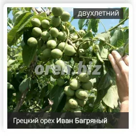 Грецкий орех «Иван Багряный» - выносливая сортовая разновидность, которая не прихотлива в уходе и на второй год после высадки способна давать первые плоды. Грецкий орех купить стоит также потому, что его урожайность высокая (до 30 кг со взрослого дерева), а ядра имеют светлый цвет и сладковатый вкус.