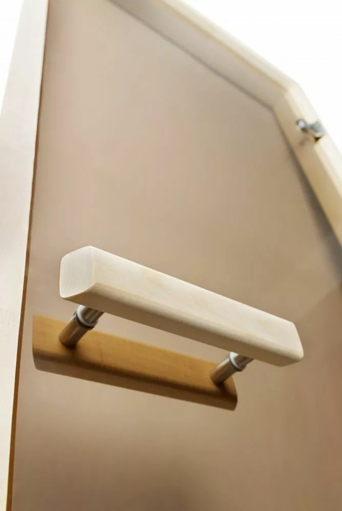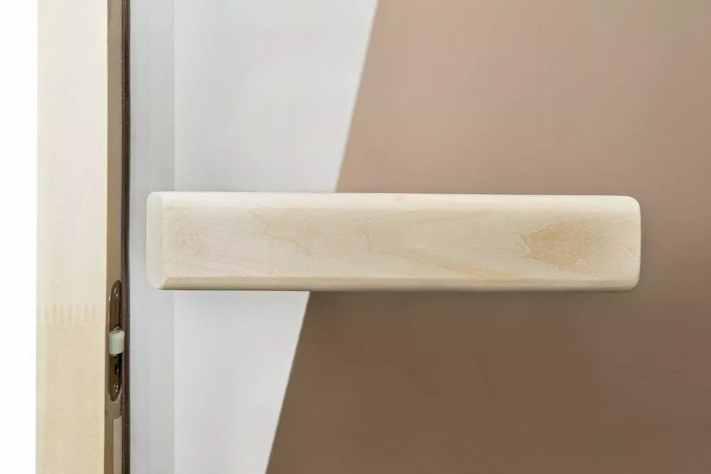Лучшим материалом для отделки бани является липа. Она сочетает в себе высокие эстетические и эксплуатационные характеристики. В сочетании с закаленным стеклом толщиной 8 мм получается красивая и надежная дверь, которая имеет следующие преимущества: