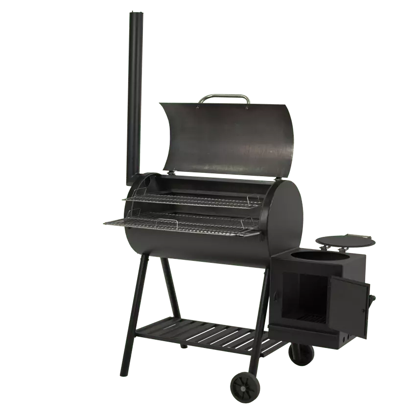 Смокер - гриль угольный oXa Texas объединяет в себе сразу несколько устройств: прежде всего это удобный, функциональный гриль с двумя уровнями решеток из пищевой нержавеющей стали; во-вторых - печь под практически любой казан; и непосредственно сам смокер.