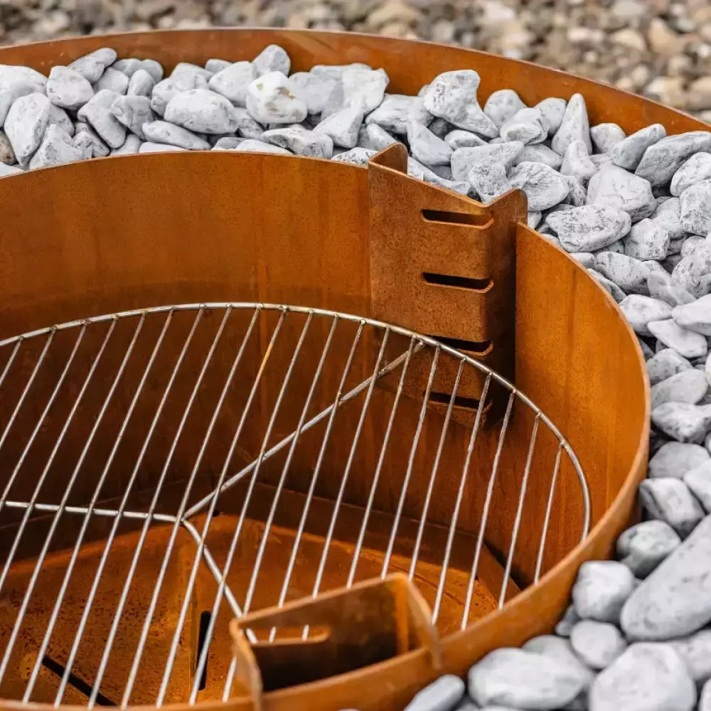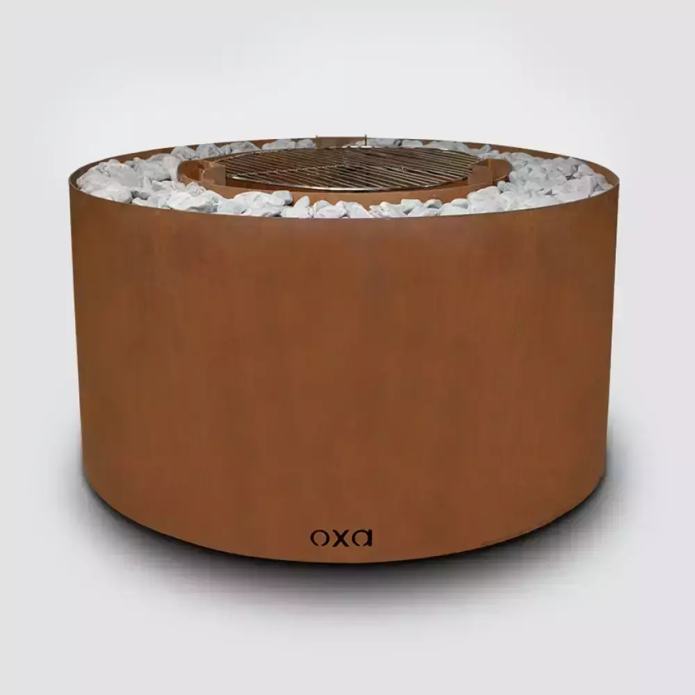 Гриль-вогнище OXA Round з CorTen  — стильне та функціональне вогнище у лінійці чаш для вогню ОХА. Конструкція кострової чаші — 958 мм у діаметрі, обладнана додатковим простором для декоративних камінців (вартість вказана без комплектації камінням).