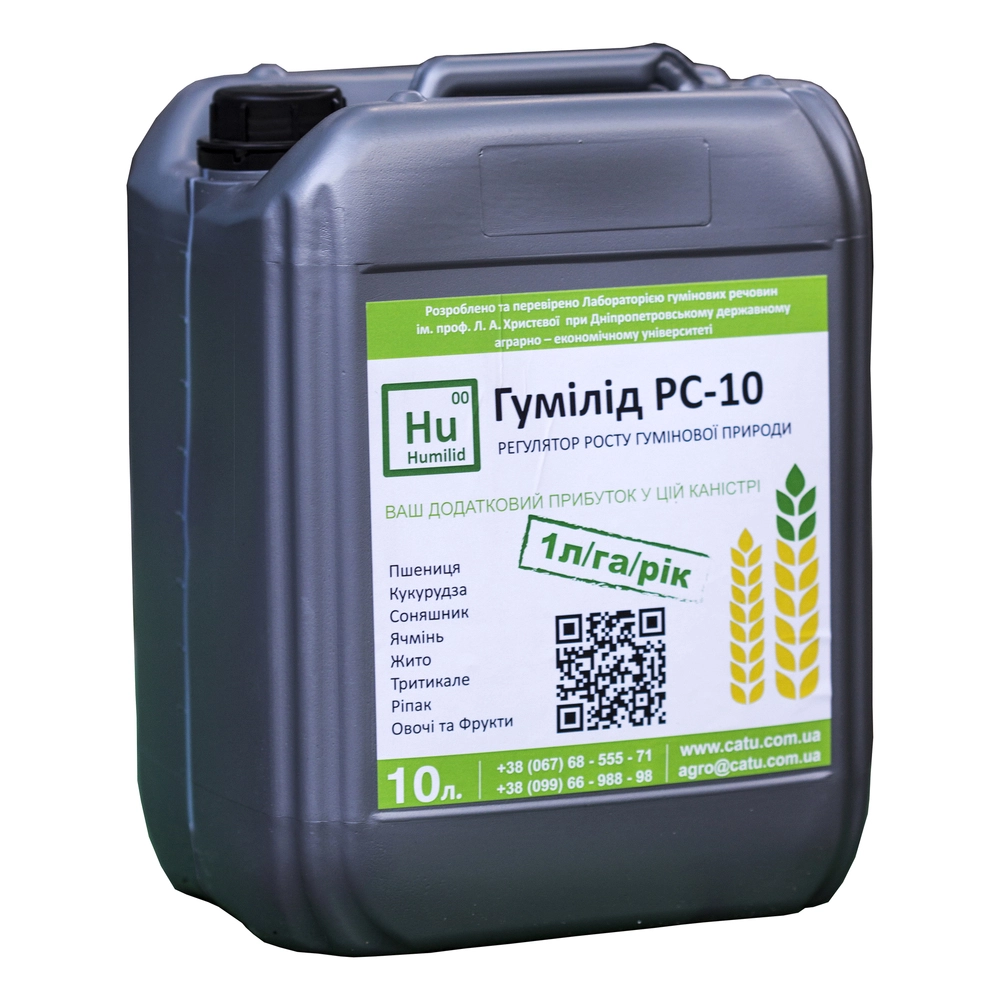 Регулятор роста растений "Гумилид РС-10" - это гуминовый препарат, созданный на основе научной работы  лаборатории гуминовых веществ им. Христевой при Днепропетровском аграрно-экономическом университете. "Гумилид РС-10" характеризуется высокой биологической активностью и высоким содержанием гуминовых веществ - 10%.