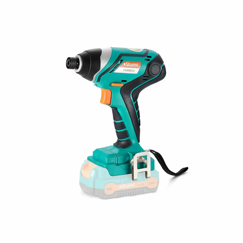 Гвинтоверт акумуляторний ударний  Sturm CD3220CLS  — потужний інструмент для легкого загвинчування довгих кріплень та свердління у металі та дереві без особливих зусиль. Інструмент ідеально підходить для роботи з дерев'яними конструкціями, металевим профілем та профнастилом, а також висотних монтажних робіт. Кріплення типу ¼ НІХ надійно фіксує оснастку. Воно дозволяє швидко міняти її навіть однією рукою. Інструмент поставляється без акумулятора та зарядного пристрою.