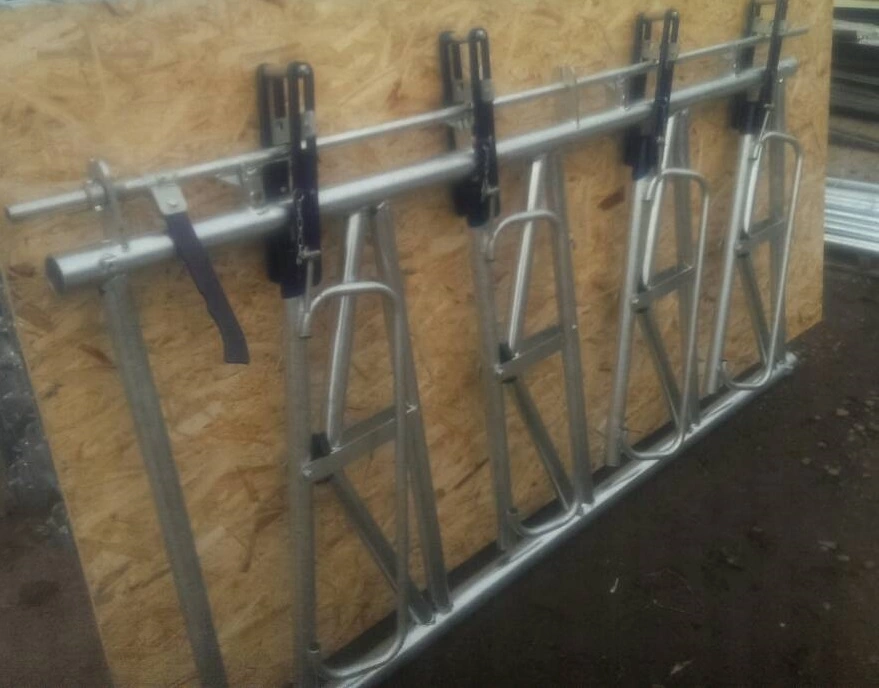 Хедлок имеет двойную функцию: первая и самая очевидная - это собственно ограждение кормового стола, а вторая - возможность зафиксировать голову коровы для проведения каких-либо ветеринарных процедур (напр. вакцинаций).