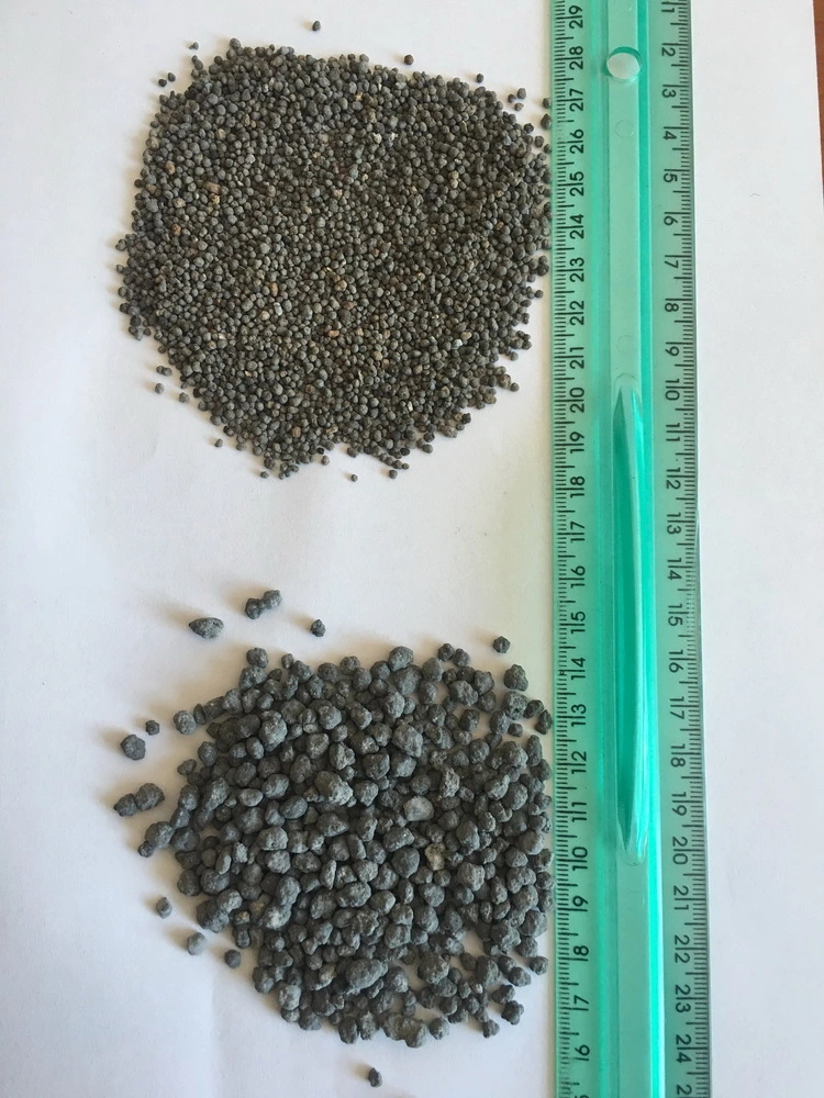 Розмір гранул: 3-6 мм (середньої фракції) рекомендується для механізованого застосування, а також для виготовлення тукосумішей (блендів); 1,5-3 мм (дрібної фракції) рекомендується для застосування садівниками і городниками.