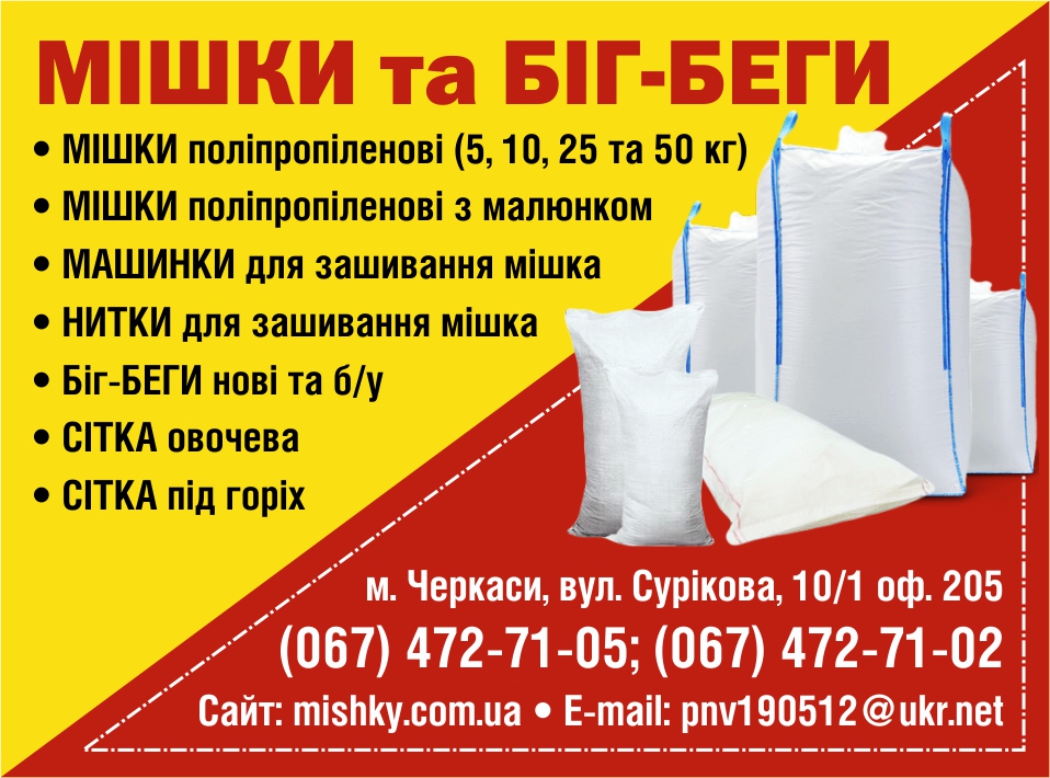 Пропонуємо купити мішки ПП оптом від виробника. Також продаємо поліпропіленові сітки для горіха і овочів, поліпропіленові контейнери Біг-Бег (нові та б / у).