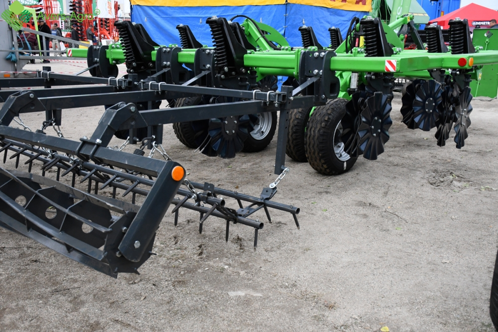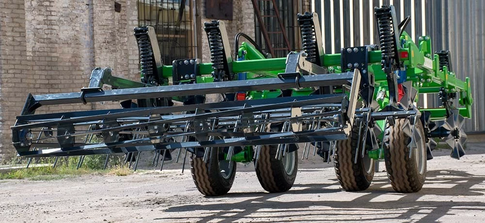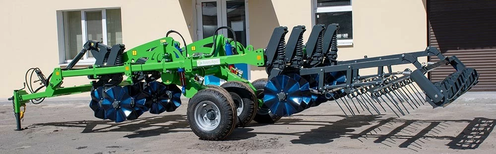 • комплектуется шлейфовой бороной и планчато-ребристым спиралевидным катком для лучшего распределения растительных остатков, выравнивания рельефа, разбития грудок и рыхления почвы;