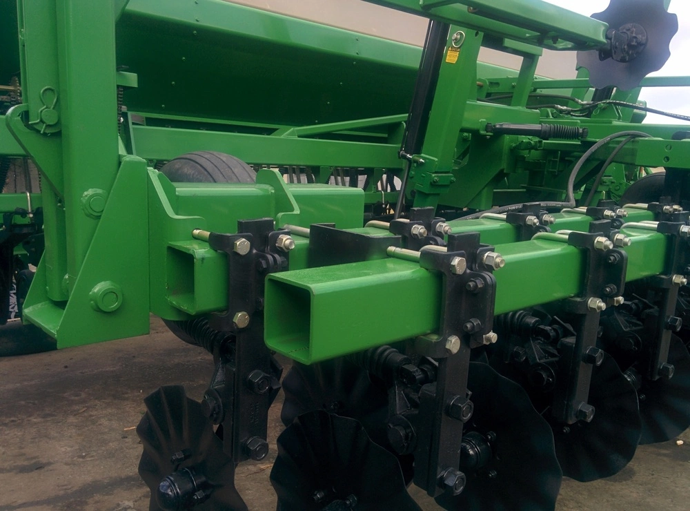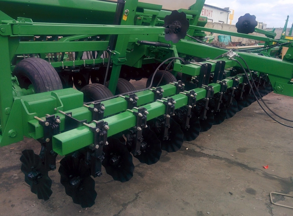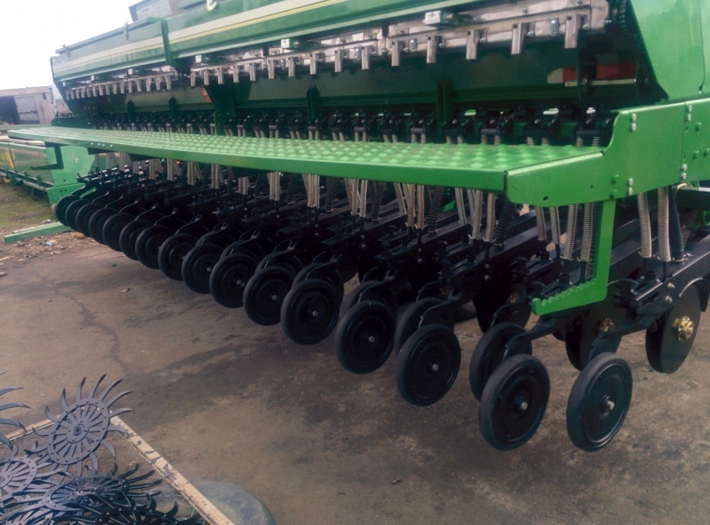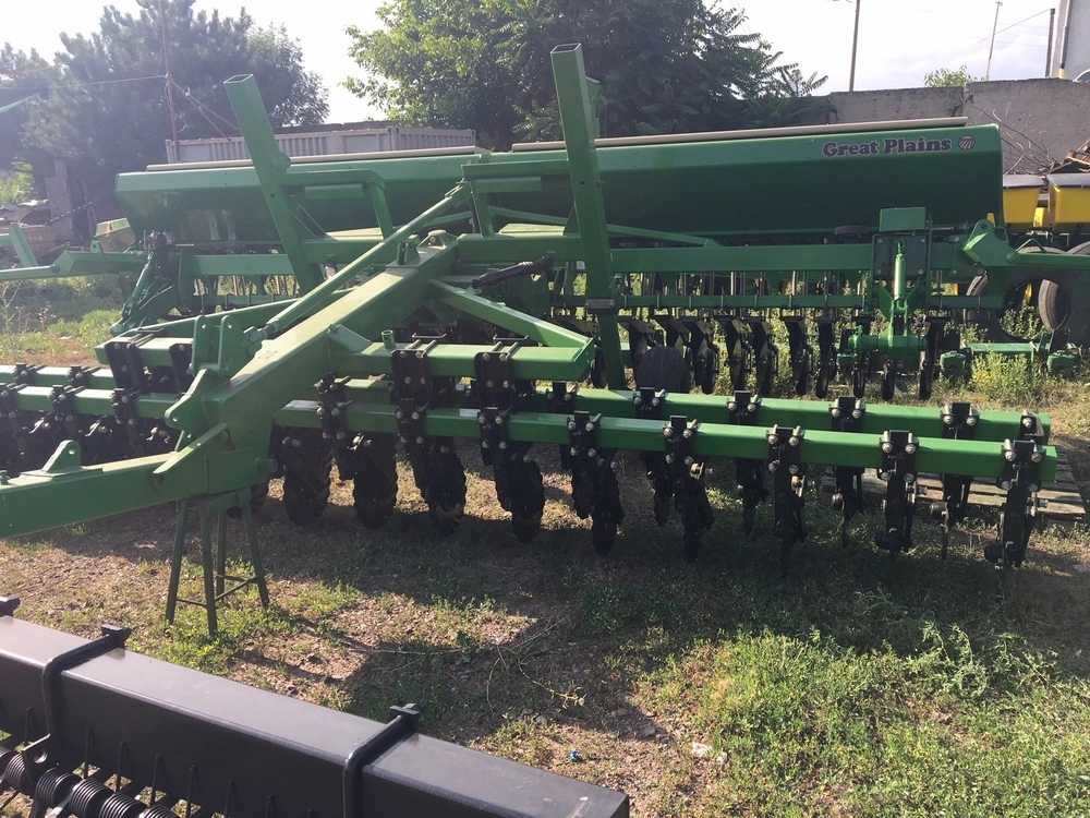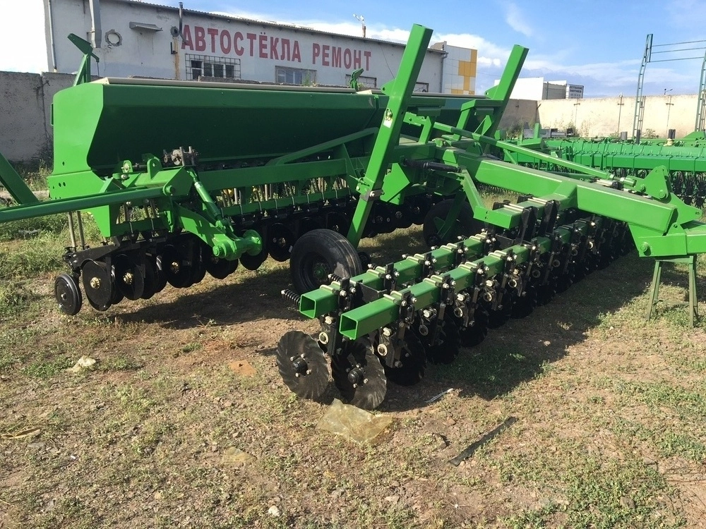 ширина захвату 4.6 м, під трактор 120 к.с., No-Till, сошник 2-дисковий, прикатуючі колеса, з внесенням сухих мінеральних добрив або без, можливо дрібне насіння, маркера, м/р 19 см, вартість 32 000 $ без сухих добрив