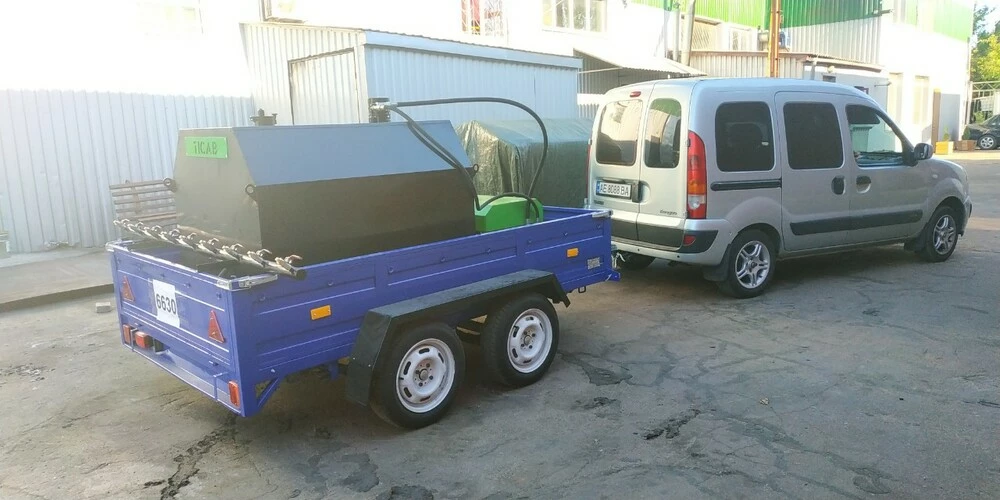 Распылитель битумной эмульсии (гудронатор БР-1000) предназначен для грунтовки перед укладкой асфальта, асфальтирования придомовых территорий, а также для заливки швов и трещин битумной эмульсией. Подача битумной эмульсии осуществляется из цистерны объемом 1000л. Система подогрева позволяет использовать распылитель битумной эмульсии в холодное время. Удобный в использовании. Имеет собственную систему промывки. Изготавливается на раме, или монтируется на прицеп.