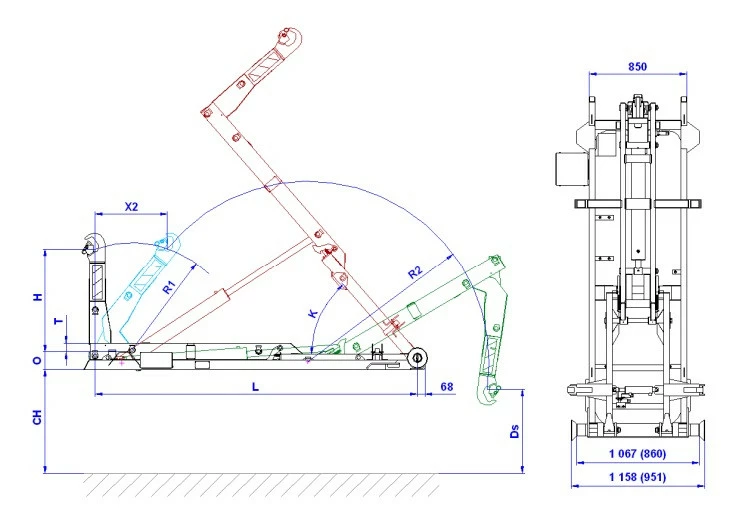 Характеристики хуклифта 03-23-K-DIN / Hook lift 03-23-K-DIN: