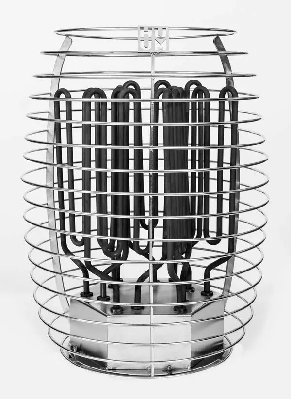 В электрокаменке практически не используется металл, а теплообмен происходит исключительно от камней. Вмещая до 250 кг камней, каменка способствует генерации продолжительного, горячего пара с высоким содержанием ионов в воздухе, в больших помещениях.