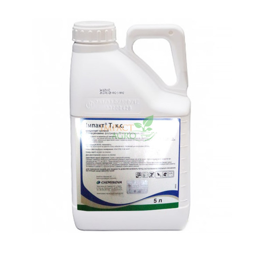 Флутриафол имеет самую высокую скорость проникновения в клетки тканей среди триазольных молекул, тем самым улучшается коэффициент усвоения тебуконазолу с препарата. Синергизм двух действующих веществ проявляется в усиленном действии на септориоз и фузариоз колоса. При использовании осенью на рапс, полностью искореняет существующие болезни, предотвращает повторное инфицирование и частично сдерживает вертикальный рост растений рапса, а обработку во второй половине вегетации (весенне-летний период) наряду с высоким уровнем контроля болезней увеличивает ветвление растений и удлиняет период цветения. Лучшая биологическая эффективность препарата отмечается во время опрыскивания растений в период их активного роста при первых признаках проявления болезней. Помимо лечебного и профилактического действия Импакт Т замедляет процессы старения клеток и способствует образованию прочного иммунитета растений.