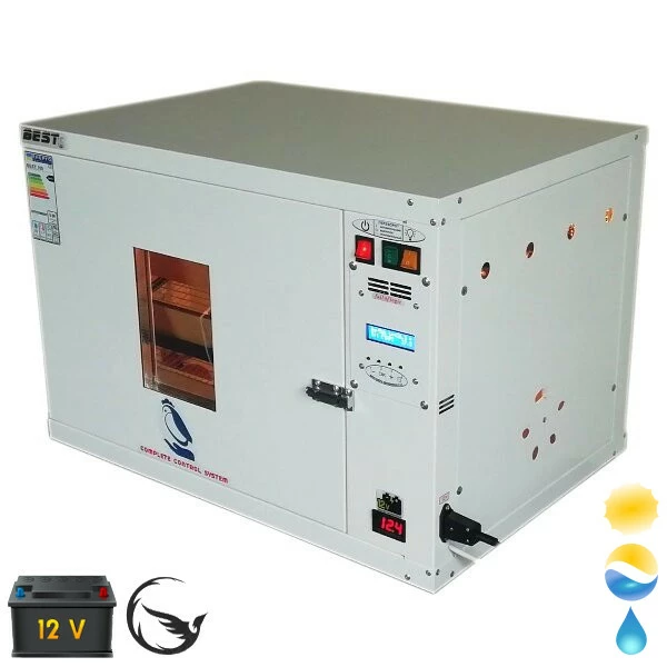 Инкубаторы Бест оснащены дополнительным отдельным цифровым который отображает заряд самой батареи. В комплекте идет шнур переходник под 12В. Инкубатор под управлением системой ICS автоматически переходит на 12В при отключении питания 220В и обратно с 12В на 220В. Инкубатор может одновременно быть включен в сеть и подключен АКБ. При разряде АКБ инкубатор так же сигнализирует уровнем контрастности самого дисплея а так же информацией на втором дисплее