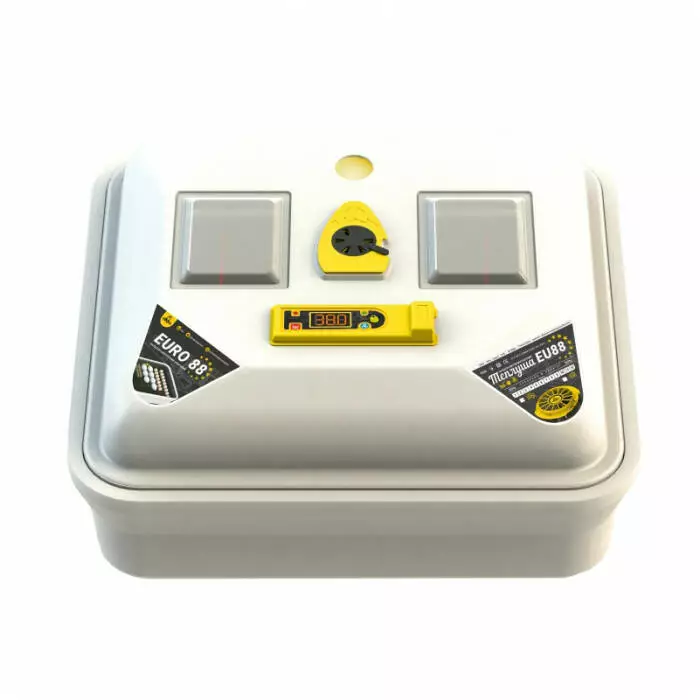 Цей інкубатор має ємність до 88 яєць, що дає змогу вирощувати велику кількість птиці за один цикл.