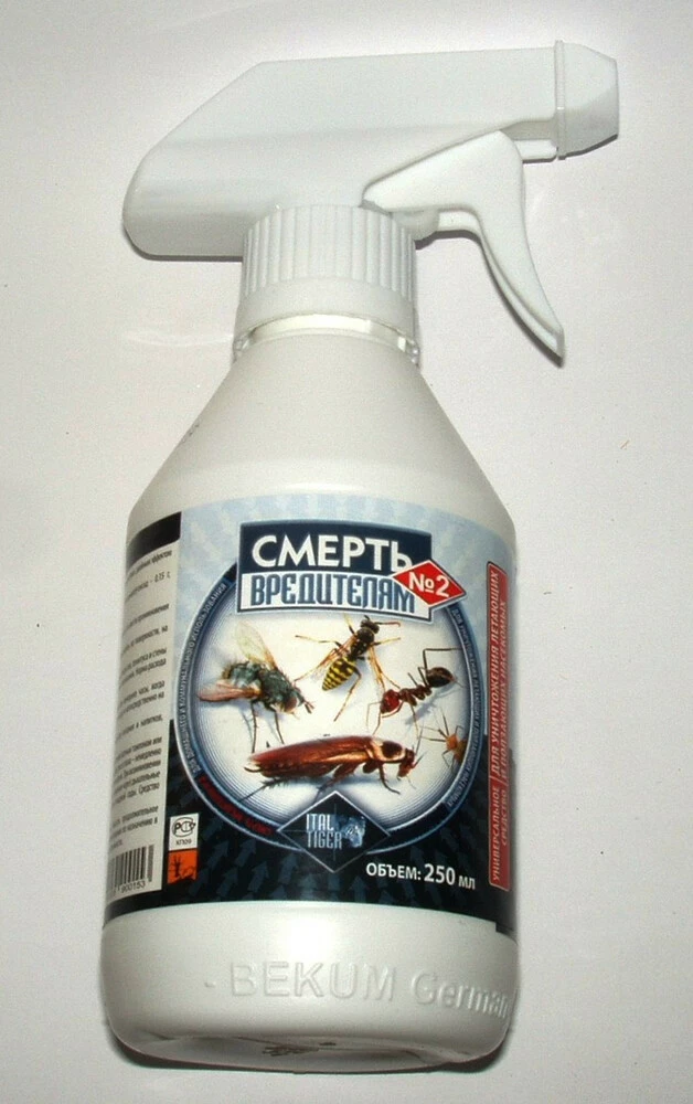 Инсектицид широкого спектра действия с двойным эффектом (мгновенное действие и длительный остаточный эффект). От тараканов, муравьев, пылевых клещей, блох, мух, ос, комаров.