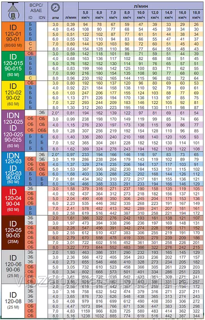 • За счёт изменения внутренней геометрии корпуса, расширен диапазон рабочих давлений и увеличено количество крупных капель в сравнении с обычными распылителями ID