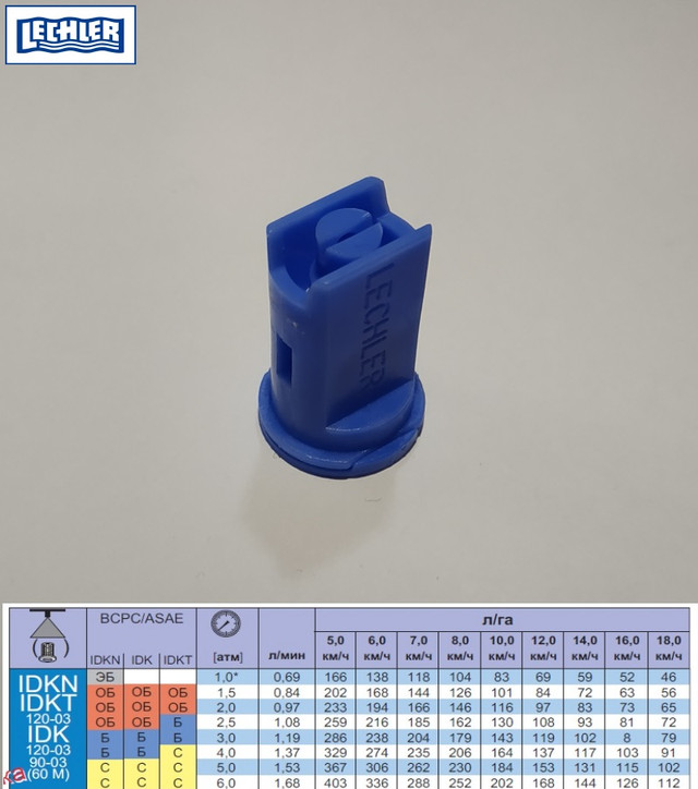 Характеристики распылителей IDK Lechler
