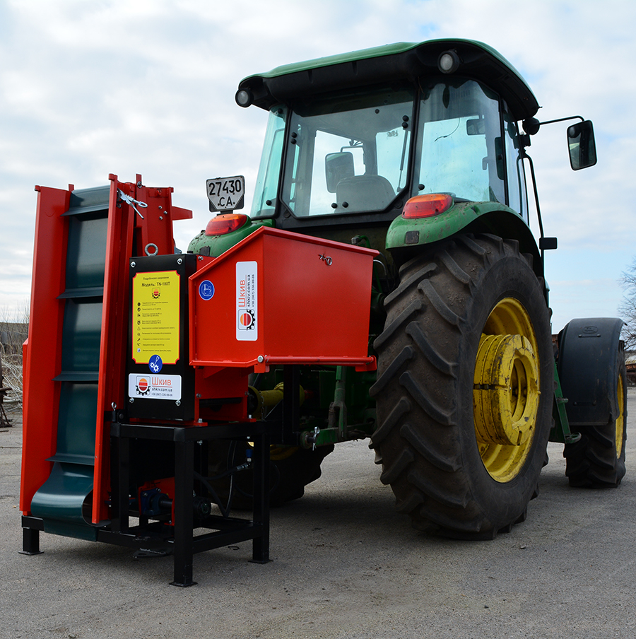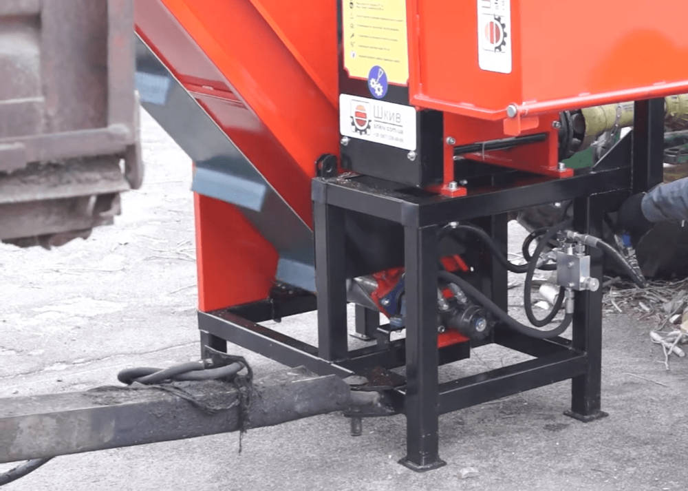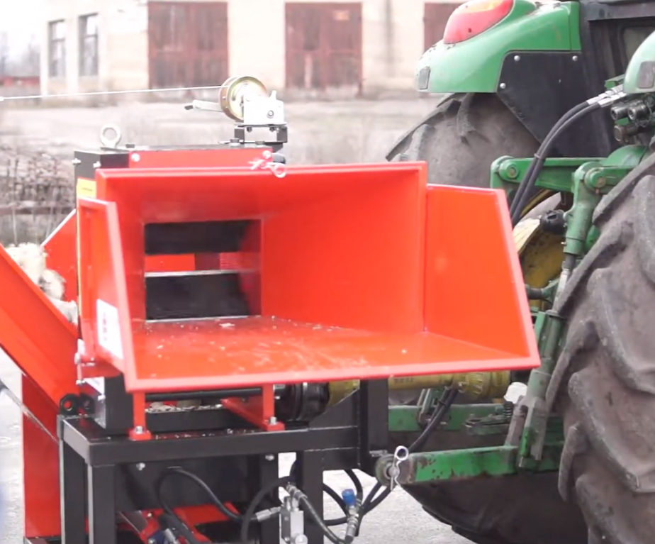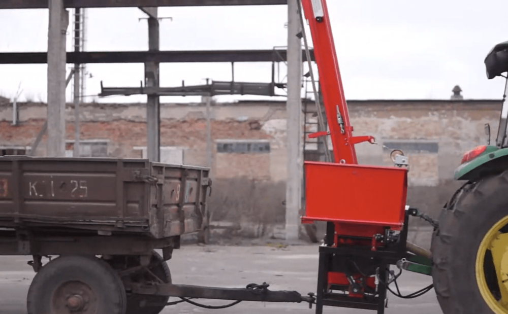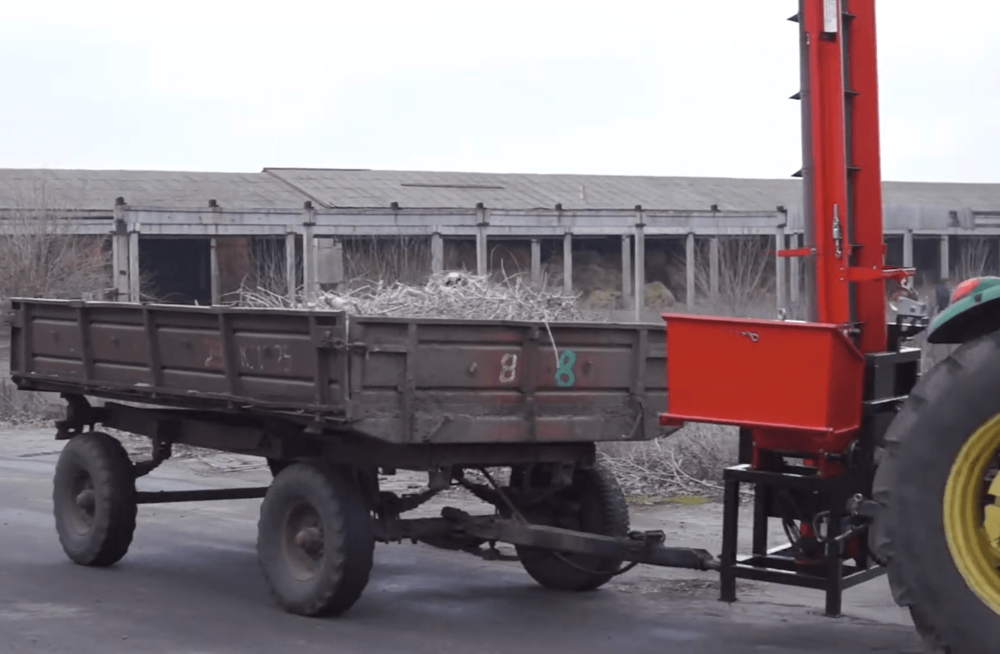Данная модель комплектуется конвейерной лентой, которая автоматизирует загрузку дров в прицеп высотой до 3м, что значительно облегчает работу и повышает производительность до 12 м3/ч готовой продукции. Благодаря внедрению привода конвейера от гидромотора стала возможна модификация конвейерной ленты по направлению хода трактора, что позволяет производить переработку веток более компактно – в одной полосе движения, что является необходимым условием в густонаселенных пунктах и на дорогах общего пользования.