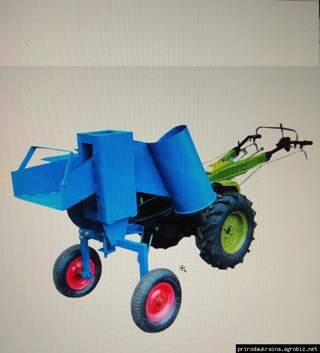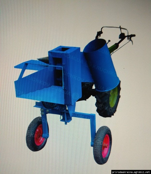 Сердцевина измельчителя веток для мотоблока установлена на раму с колесами. Имеется прицепной узел и натяжитель ремня, а также съёмное дышло, которое используется для транспортировки изделия.