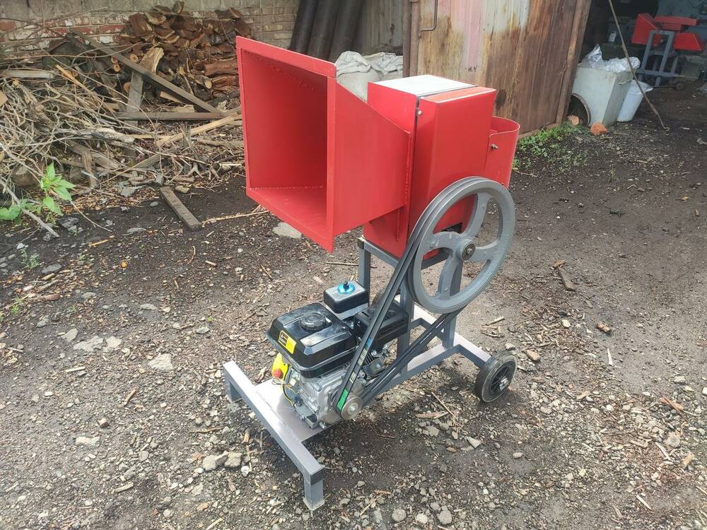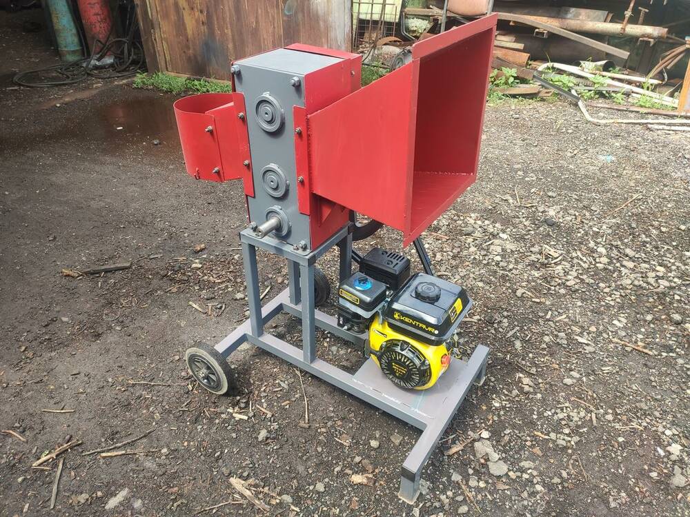 Технические характеристики Максимальный диаметр веток: 80 мм Количество валов: 3 шт Внутренняя ширина механизма: 170 мм Длина разрезанных веток: 4-7 см. Производительность: 4 м3/час Размеры измельчителя в собранном состоянии: 107х60х102 см Расход топлива: 0,8 л/час. Двигатель: бензиновый Мощность двигателя: 7 л.с. Обороты двигателя: 3600 об/мин Вес: 107 кг Гарантия: 1 год Возможна установка дровокола-моркови, колеса для увеличения инерции или дополнительного маховика. Для твердотопливных, печей, пиролизных котлов. Данная модель может работать с электрическими и бензиновыми дизельными двигателями не менее 6 л. с. В настоящее время модель комплектуется бензиновым двигателем Кентавра. По желанию заказчика устанавливаем хоть какой движок. Рубальная машина (измельчитель ветвей) хорошо подходит для переработки обрезков сада, крон деревьев в лесной отрасли, древесных отходов после коммунальной деятельности и в подсобных хозяйствах, которые, возможно, выбрасываются и ранее не рассматривались как топливо. При заготовке дров большинство из нас ветки выбрасывали и не использовали, эта машина позволяют использовать всю древесину без остатка. Вы сами знаете сколько растет самосевная поросль, которую беспрепятственно можно перерабатывать нашей машиной в топливо. Также машина отлично справляется с рубкой обапола (отходы пилорамы) Конструкторская разработка данной машины направлена на передачу нужных оборотов на рабочую часть машины, необходимую для качественной, сильной рубки и долговечности работы. Ножи дробилки машины изготавливаются из специальной стали, которая проходит термическую обработку и легко снимается для обслуживания, замены. Обороты от двигателя проходят через ременную передачу и редуктор, обеспечивая правильное понижение оборотов для увеличения силы ударов ножей по древесине. Шестерни редуктора изготавливаются из стали 20ХН3А и проходят термообработку. Для расширения возможностей измельчителя ветвей Rezak дополнительно можно установить: дровокол-морковка, стол под дровокол, ступица под колесо, дополнительный маховик или отягощенный шкив