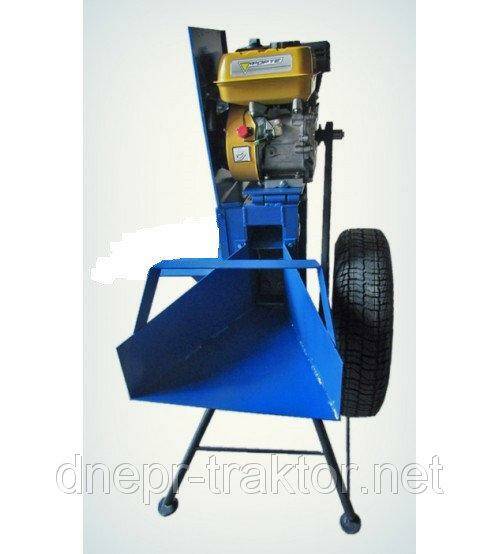 Измельчитель ветвей с приводом от бензинового двигателя служит для рубки сухих веток диаметром 50-65 мм на отрезки по 100 — 120 мм.