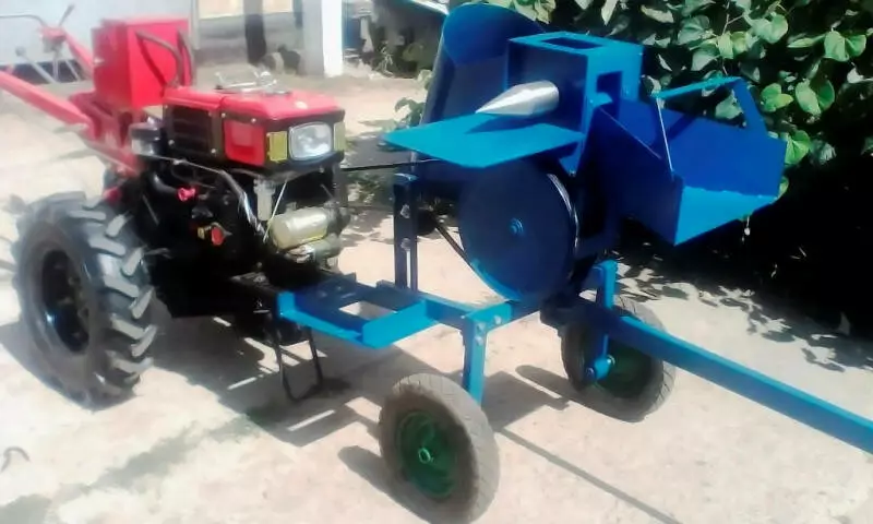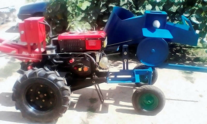 Измельчитель веток с приводом от мотоблока предназначен для рубки сырых веток диаметром 50-65 мм на отрезки по 100-120 мм. Может агрегатироваться с мотоблоками, оснащенными двигателями водяного охлаждения.