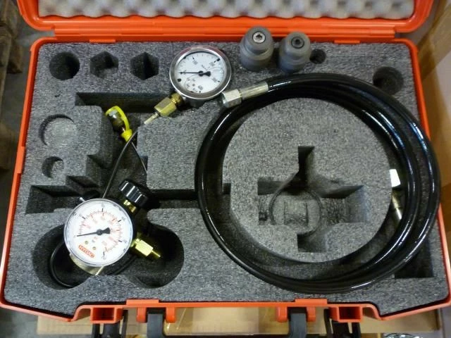 Измерение гидравлических параметров и их обработка является основой надежного устранения неисправностей. Провести профессиональную диагностику гидросистемы помогут ,предлагаемые ООО "Гидравлик Лайн", наборы для измерения давления в гидравлических системах , которые включают в себя манометры (диапазон измерения от 0 до 60 МПа. Корпус: нержавеющая сталь.),соединительные шланги и адапторы. Все находится в компактном кейсе с прочным корпусом.