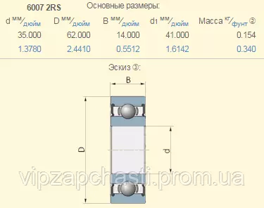 Подшипник шариковый JD10210 John Deere аналог 6007-2RS, 212229, 822-125C, 364908