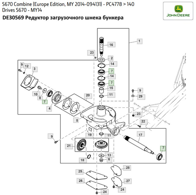 1 - Gear Case 1 : DE30569 Remarks : SUB FOR AXE13674