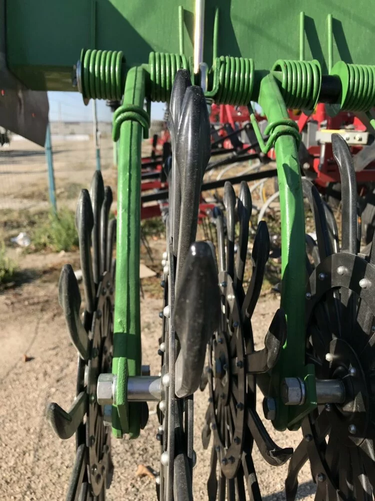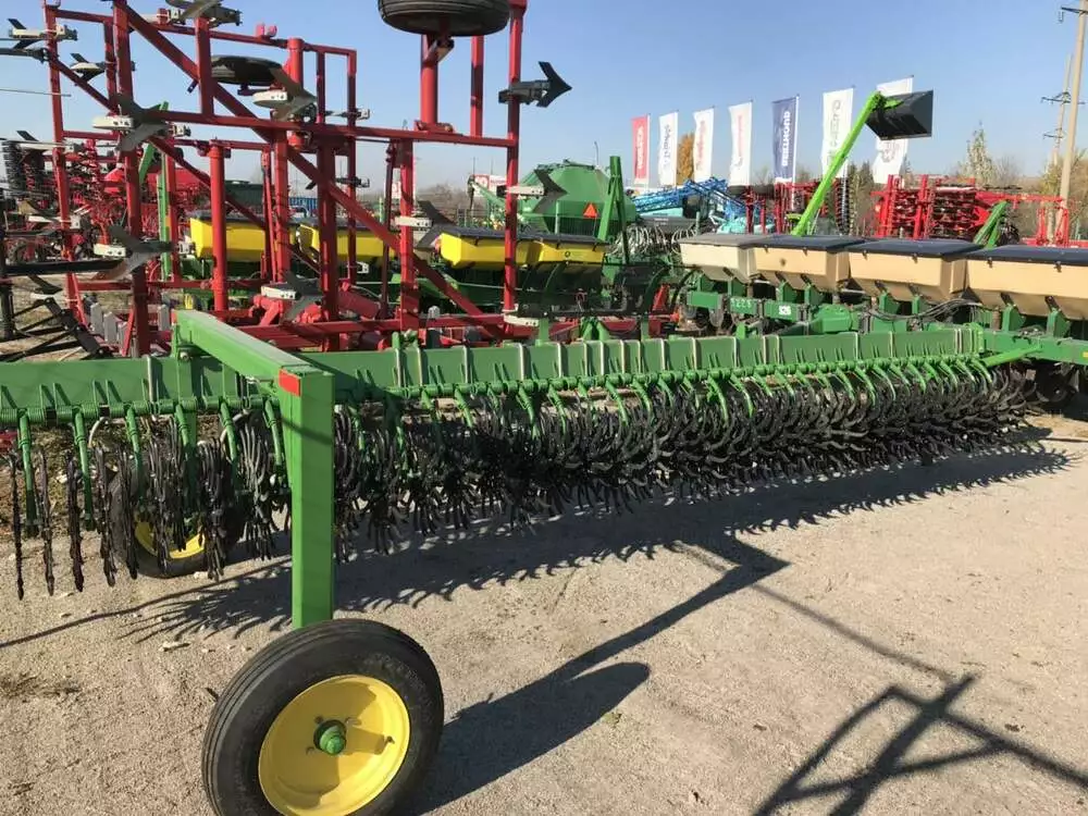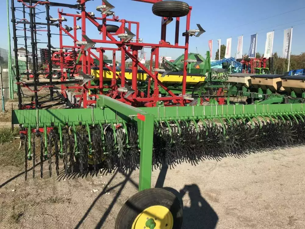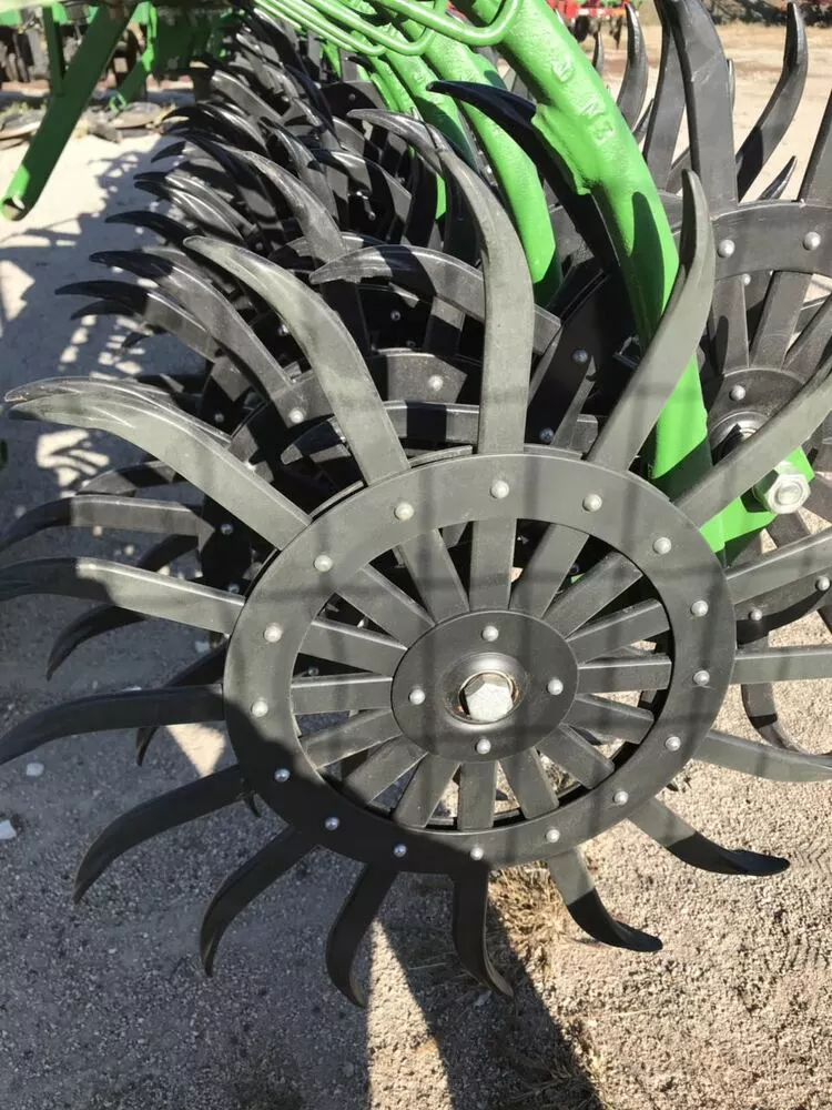 Ротаційна борона John Deere 400 Призначена для довсходового і післясходового боронування посівів польових культур (зернових, просапних, технічних) з метою: • поверхневого розпушування та аерації ґрунту • знищення ниткоподібних входів бур'янів Робочі органи мотики створюють ідеальне тло для початкового розвитку кореневої системи растетній, добре мульчують верхній шар грунту, руйнуючи грунтову кірку, тим самим зберігаючи вологу, знищують ниткоподібні коріння бур'янів до 100% на швидкостях до 20 км / год. Це робить можливим перейти на безгербіцидною технологію. При появі монолітної ґрунтової кірки на ранніх сходах культуртних рослин, наприклад, кукурудзи в стадії 2-3 листків, коли застосування зубових борін неможливо, ефективність використання мотики різко зростає.