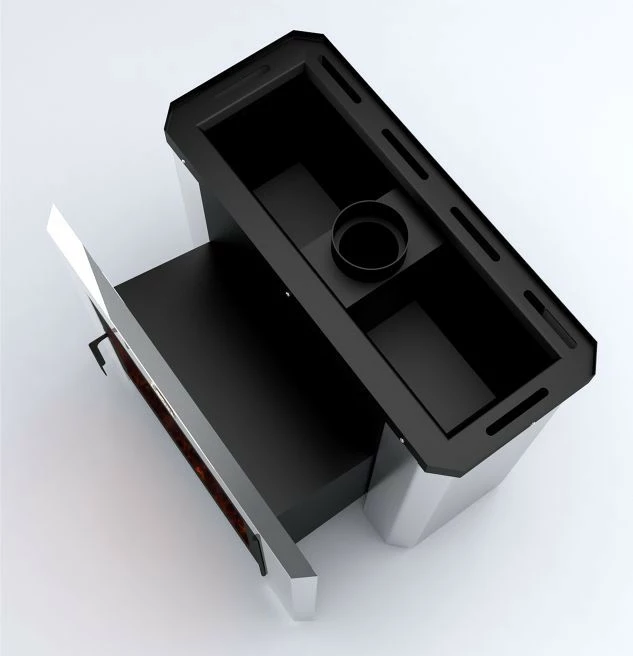 Дверца печки, выносного топливного канала, оборудована термостойким стеклом «SCHOTT ROBAX» размером 460х310 мм.