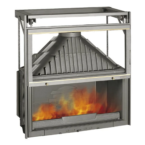 Цепная система подъема дверцы чугунных топок Laudel считается самой надежной, и не нуждается в обслуживании в отличи от троса. Новые модели топок оборудованы системой дожига печных газов и цельно-литым дымозборником.