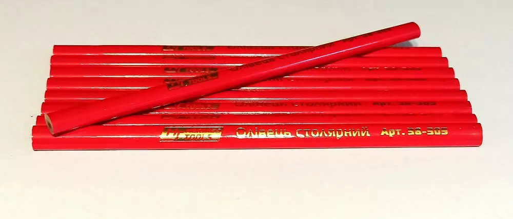 Карандаш столярный — незаменимый инструмент для строительных работ. Грифель карандаша прочный и позволяет делать тонкие линии и толстые маркировки, поэтому достаточно будет иметь под рукой только один вариант, а не несколько на все случаи жизни. Метки наносятся на поверхность с любой фактурой.