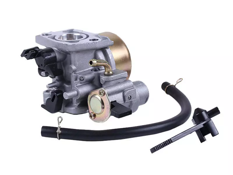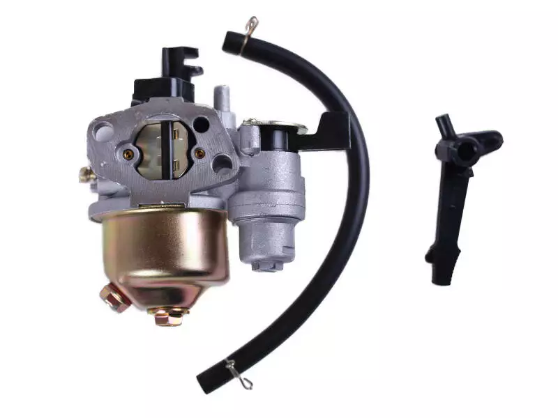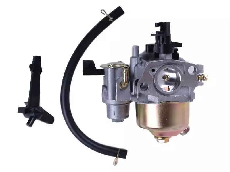 Карбюратор ТАТА на бензиновый двигатель 168F – элемент впускной системы силового агрегата. Предназначен для приготовления топливной смеси из воздуха и горючего в пропорциях, необходимых для правильной работы мотора. Особенности устройства и функционирования Деталь состоит из - корпуса, заслонок, поплавка и жиклера. Для настройки соотношения воздух/бензин в топливной смеси карбюратор имеет специальный регулировочный винт. Отдельно расположен винт регулировки холостого хода. В деталь встроен кран подачи горючего, прекращающий поступление бензина в поплавковую камеру при его простое. В комплект входит: • Топливный шланг с хомутами для соединения карбюратора с бензобаком. • Пластиковый рычаг, управляющий заслонкой обогатителя топливной смеси. Крепится на шпильки карбюратора. Обеспечивает возможность вручную открывать и закрывать заслонку в момент старта двигателя. Карбюратор - очень точное и тонко настраиваемое устройство, требующее надлежащего ухода и регулировки, от которой зависит работа силового агрегата в целом. Для продления срока службы рекомендуется использовать только качественное топливо и следить за чистотой воздушного фильтра.