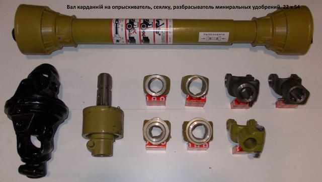 Карданный вал на опрыскиватель, крестовина (22 х 54), вилки любой конфигурации, труба трехгранная или профиль лимон