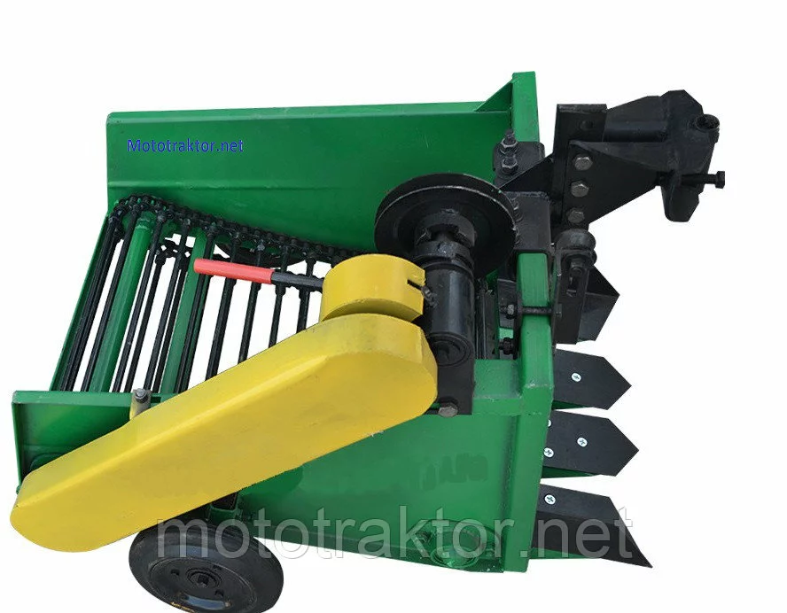 Улучшенные ножи. Вместо одного сплошного, как это бывает обычно, установлены аж 4 раздельных ножа. Такая конструкция, позволяет выкапывать картофель мототрактором даже на средних и тяжелых грунтах.
