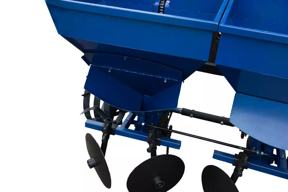 Картофельная сажалка для минитрактора с бункером для удобрений – это сеялка для картофеля Украинского производства. На этой модели картофельной сеялки установлены два увеличенных бункера, с объемом по 60л каждый. Сажалка для картошки может быть устанавливаться на минитракторы, оснащенным 3х точечным прицепным устройством.