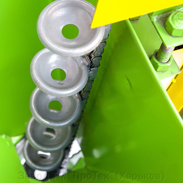 Отличительной особенностью данной модели является привод на мото цепи, который гарантирует отсутствие проскальзывания, как следствие гарантирует равномерную и без пропусков высадку клубней.