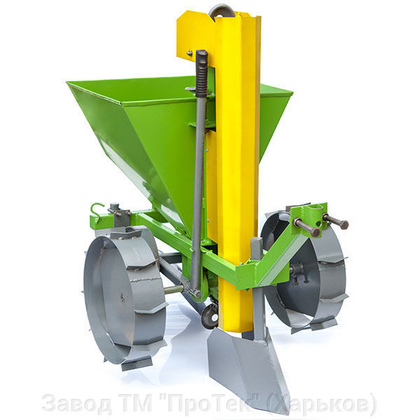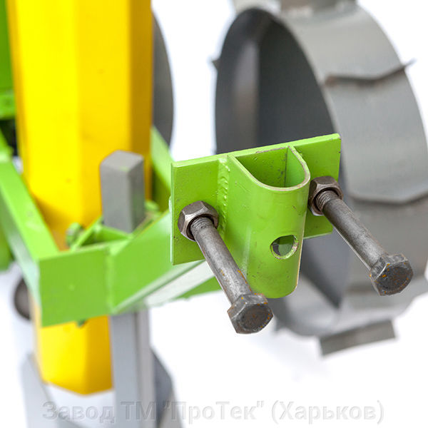 Усиленный бороздорез изготовлен из листовой стали толщиной 4мм и обеспечивает глубину высадки клубней до 15см (примечание: рекомендуемая глубина высадки клубней агрегатом 5-10см). Бороздорез имеет регулировку по высоте с прижимными болтами, что позволяет регулировать глубину высадки с точностью до 1 мм.