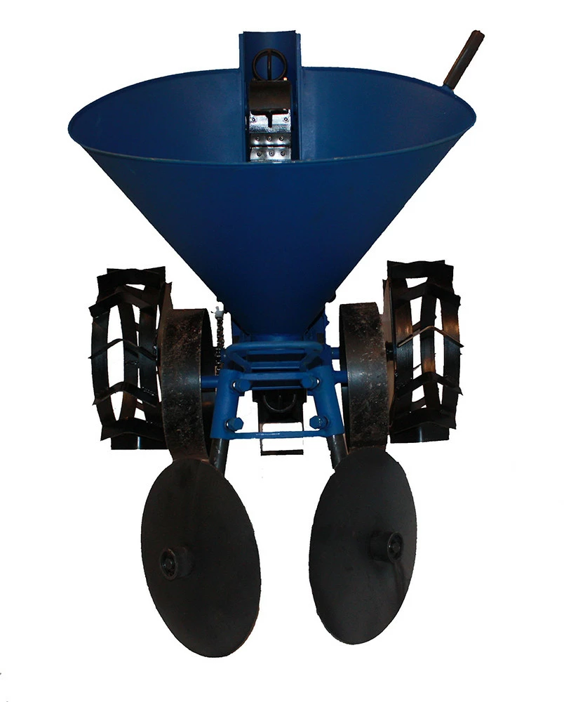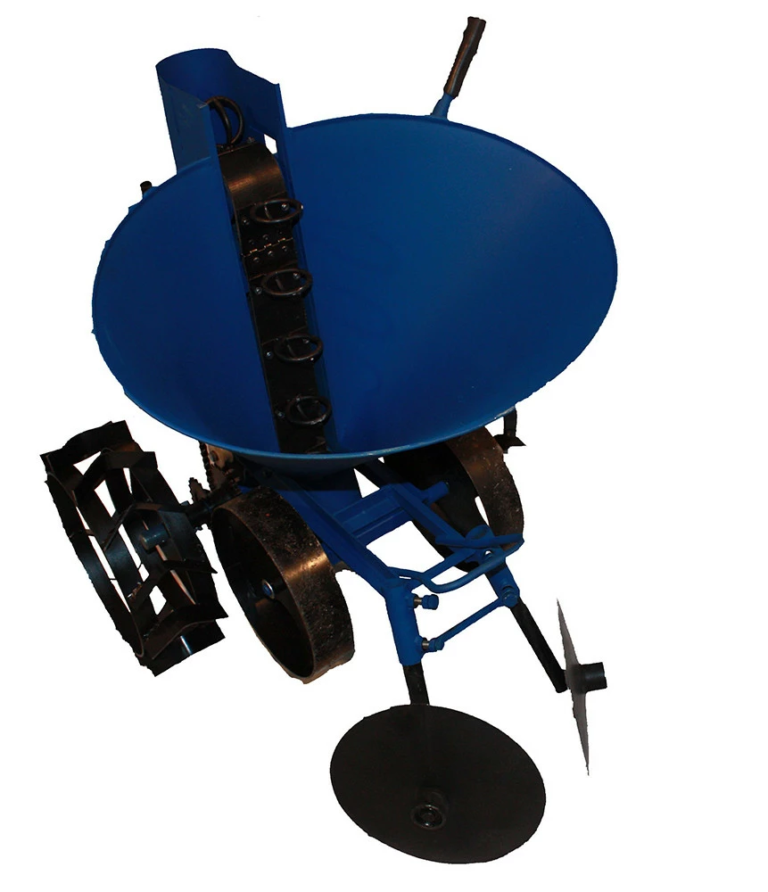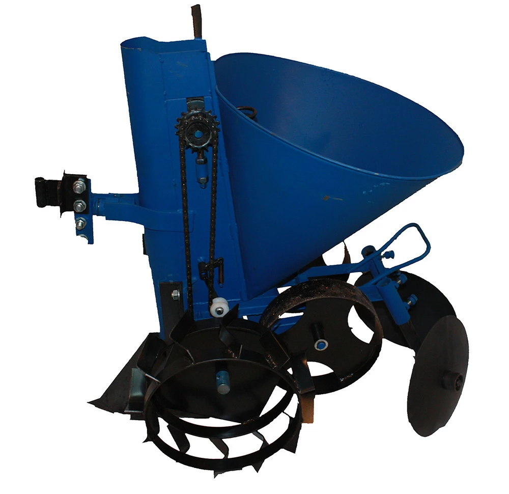 Агрегатируется с мотоблоками, предназначен для посадки картофеля на предварительно обработанных грунтах. Обеспечивает быструю и качественную посадку разного по размеру картофеля на заданную глубину с равномерным шагом, создает благоприятные условия для последующей быстрой и качественной механизированной обработки участка. Для изменения шага посадки используются сменные звёздочки, которые входят в комплект сажателя: - Z=16 зубьев мм: 210 - Z=19 зубьев мм: 280 - Глубина посадки 50,100 мм. - Емкость бункера 20 л. - Ширина колеи рабочих колес мм: 550,650 - Длина: 970 мм; - Вес 40 кг.