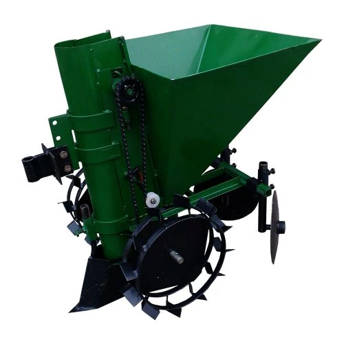 Картоплесаджака мотоблочна П-1Ц це просте та надійне пристосування для посадки картоплі в один ряд. Привід обертання для посадки картоплі здійснюється через ланцюг від грунтозацепів. Ложечки для укладання картоплі розташовані на ланцюзі. Бункер трапецеїдальної форми місткістю 34 л.