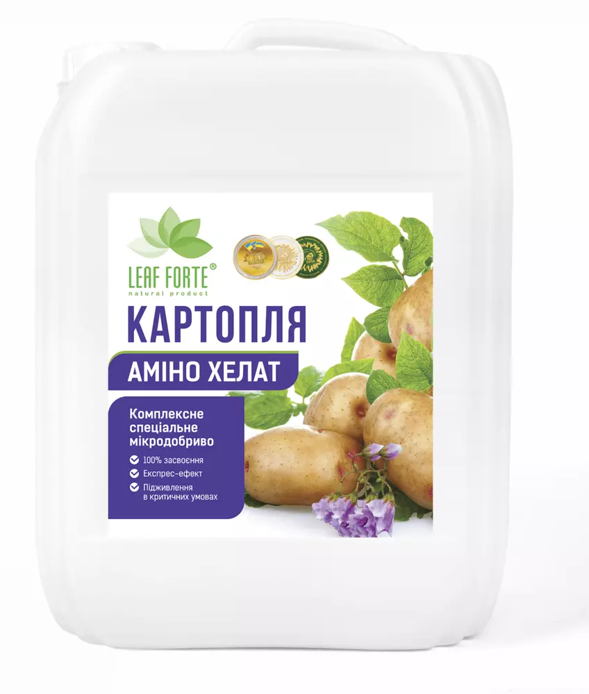 Застосовується для комплексного підживлення картоплі. Унікальна формуляція амінокислот, макро- та мікроелементів у добриві ефективно впливає на зменшення стресу, регенерацію тканин, засвоєння та усунення дефіциту елементів живлення, обмін речовин, окисно-відновні реакції, фотосинтез, цвітіння, кількість зав'язей і плодів. Забезпечує високу врожайність та якість плодів, покращує такі важливі товарні показники, як смакові якості, вміст вітамінів, цукрів, вільних амінокислот, поліолів. Знижує рівень нітратів в продукції.