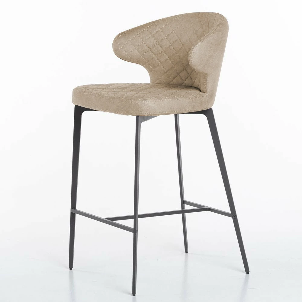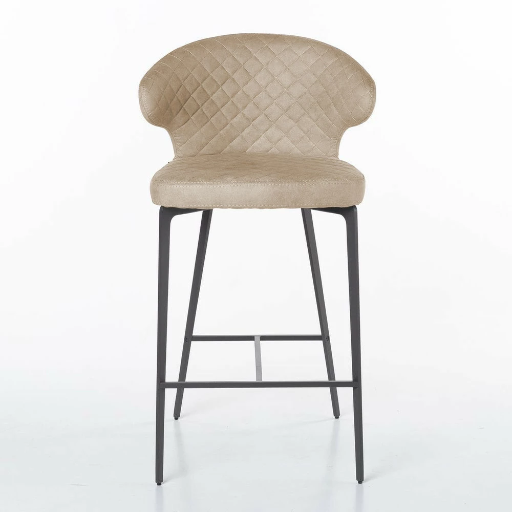 Обзор полубарного стула Keen (Кин), цвет бежевыйНеобычная форма спинки с "ушками", фактурная обивка, тонкие изящные ножки, необычный оттенок - такая модель полубрных стульев Keen привлекает внимание с первого взгляда. Просторная и немного изогнутая спинка расширяется ближе к верху, делая общую форму максимально удобной для тела. Выступающие "ушки" можно использовать как подлокотники, что гарантирует комфорт и эргономичную посадку. Этот дизайнерский полубарный стул является воплощением нашумевшего в начале двадцатого века стиля ар-деко, но в более современном исполнении. Полубарный стул Кин - универсальная модель, которая, в то же время, обладает уникальным и необыкновенным внешним видом. Стулья можно и нужно использовать не только в домашних интерьерах, но и в ресторанах, кафе, барах гостиниц и других заведений сегмента ХоРеКа. ВАЖНО: посадочная высота полубарных стульев составляет 65 см, а значит, рекомендуемая высота барного стола или стойки - до 100 см. Пожалуйста, внимательно измерьте ваше столешницу перед покупкой стульев!Обивка: мебельная ткань с эффектом нубукаБез сомнения, главная изюминка этой модели полубарных стульев - обивка. В качестве обивочного материала выбрана мебельная ткань с эффектом нубука. Ткань очень прочная, но в то же время мягкая и приятная на ощупь. Обивка декорирована строчкой "в ромбик". Ткань специально предназначена для использования в мебельной промышленности, образец текстиля прошёл все необходимые тесты на износоустойчивость (не менее 25 тыс циклов истирания по Мартиндейлу). Подходит для ежедневного использования дома, а также для коммерческого применения (сегмент HoReCa). Цвет обивки - бежевый.Больше о данной модели стульев:высокопрочный стальной каркас, который традиционно является одним из самых надежных материалов для производства ресторанной и гостиничной мебели;стальные ножки изящной формы слегка скошены назад, что обеспечивает бОльшую устойчивость и снижает вероятность раскачивания;ножки окрашены в серый матовый цвет порошковым методом;на концах ножек есть пластиковые заглушки для защиты пола от царапин;есть подножка;рекомендуемая максимальная нагрузка - до 120 кг;сборка не требуется.