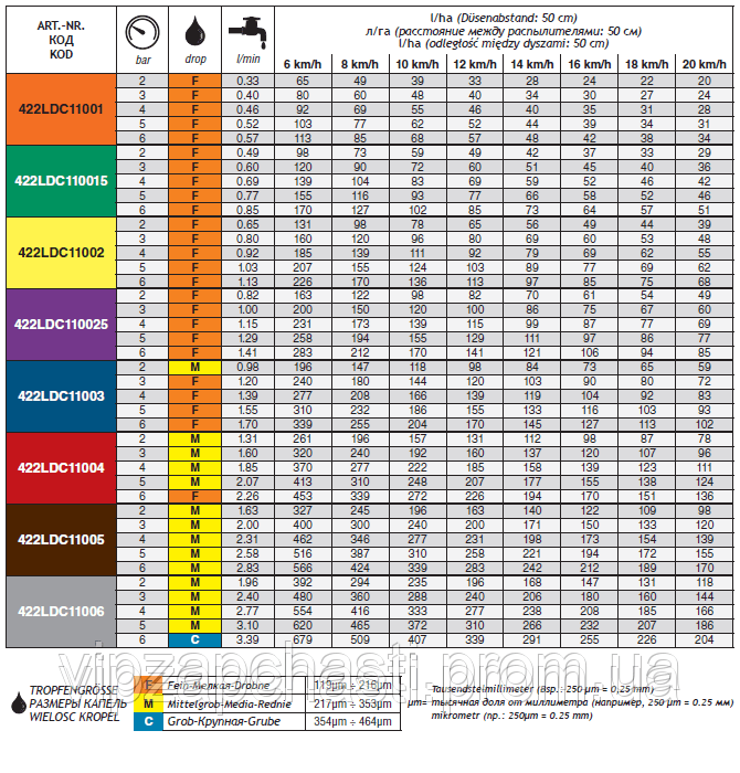 • Снижают образование мелких капель, по сравнению с моделями Standard Flat Fan чувствительны к воздействию ветра. • Значительно снижают снос в условиях ветра.