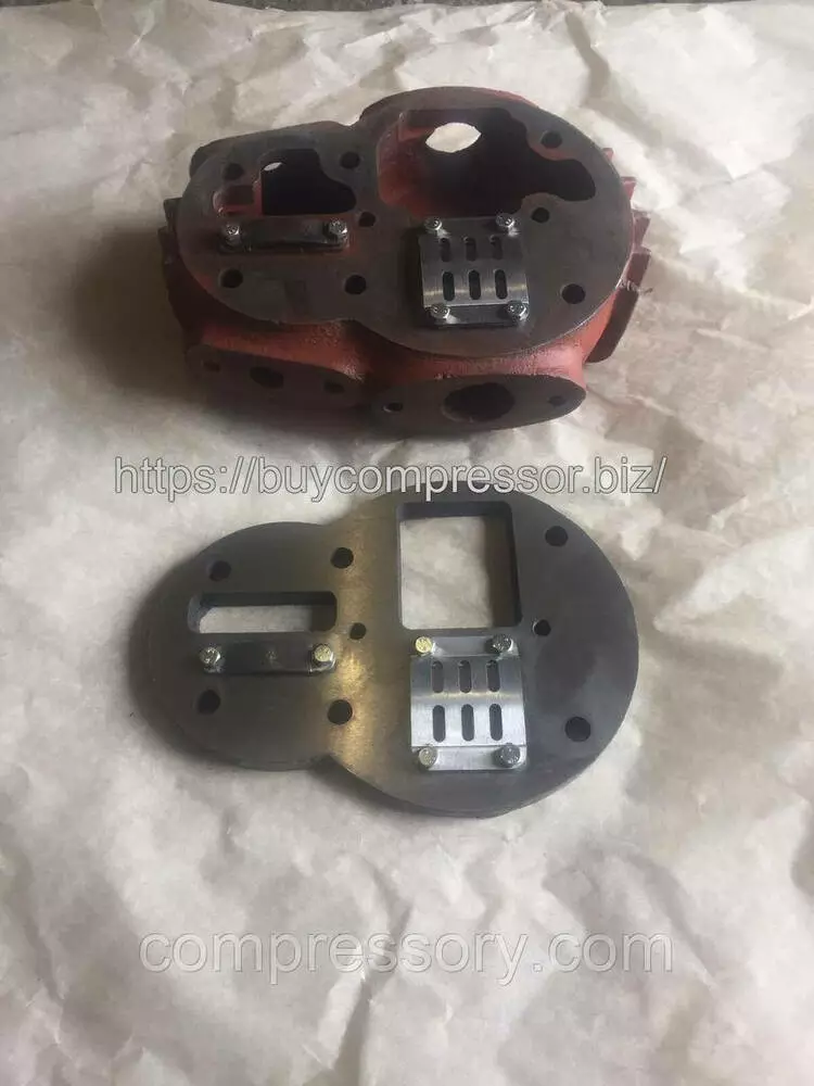 Клапан (головка) компрессора ГСВ-0,6/12; ГСВ-1/12; 155-2ВУ4; 1101-В5У4; 155-2В5У4; 110-2Ву4 производства СССР, АО «Бежецкого завода АСО» и на компрессорах Артёмовского завода, начиная с 1960 г. и заканчивая 1989 г., устанавливается поверх цилиндров, состоит из двух частей, чугунной плиты и верхней, чугунной крышки к которым крепятся клапанные пластины и остальные комплектующие. Клапан (головка) подлежит ремонту, Вы можете отремонтировать его как сами, так и прислать к нам для качественного ремонта опытными специалистами.