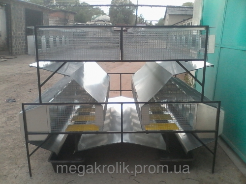 Изготовлена из оцинкованного металла (оцинкованная сетка и оцинкованный металлический лист) Оборудованая системами поения (трубы ПВХ квадратного типа 22х22 мм с вмонтированными ниппельными поилками 10022-Т), кормление (бункерные кормушки с двумя отделениями, изготовленные из оцинкованного металлического листа). Простая и удобная в эксплуатации, легко моется и дезинфицируется. Оснащена усовершенствованной системой уборки.