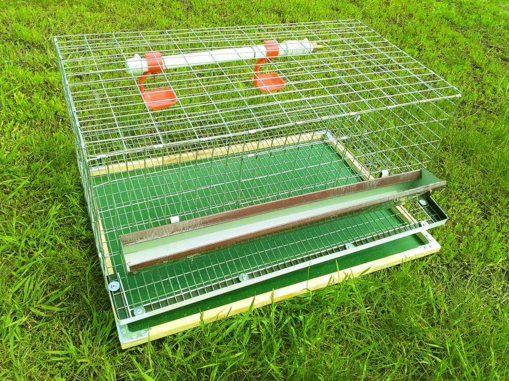 Прекрасная клетка для содержания 30 перепелок-несушек. Небольшая, компактная, легкая и, в тоже время, крепкая клеточка, снабженная системой ниппельного поения, желобковой кормушкой с отбортовкой от рассыпания корма, металлическим поддоном с полимерным покрытием мощная оцинкованная сварная сетка 2мм - все это позволит Вам пользоваться этим оборудованием не один год.