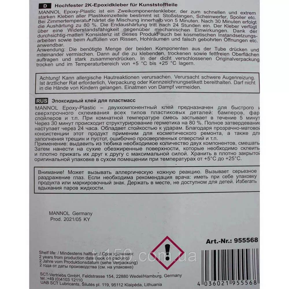Клей эпоксидный MANNOL 30 грамм, по пластику
