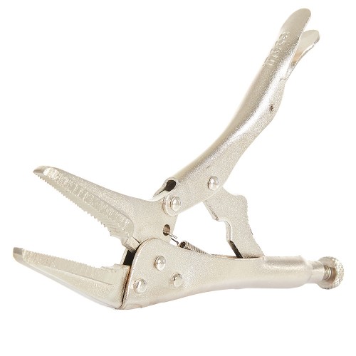 Кліщі затискні INGCO HLNP0209 призначені для професійних слюсарно-монтажних робіт, де потрібен міцний надійний захват і затиск деталей. Забезпечені двома ручками — рухомою та нерухомою. Виготовлені з вуглецевої сталі, мають нікелеве покриття. Твердість затискних поверхонь 38–48 HRC. Довжина інструмента 230 мм.