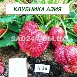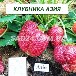Сорт итальянского происхождения, выведенный селекционерами в 2005 году. Принадлежит к сортам средне-раннего периода созревания. Кусты крупные. Плодоносит месяц. Ягоды клубники Азия большие, 20 - 34 грамм, ярко красного цвета в форме удлиненного конуса.