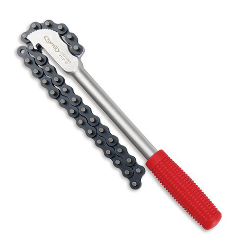 Съемник м/фильтра цепной d13-152мм. Сверхмощная термообработка цепи, рукоятка из хроммолибденовой стали. Мягкая удобная ручка усиливает сцепление и способствует меньшей усталости рук | Идеально подходит для снятия фильтра , поворачивания больших труб и удержания шкивов
